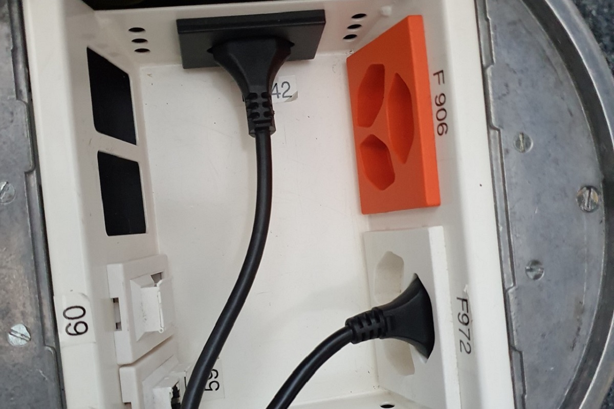 • Die Büroräume sind klimatisiert und im Boden sind bereits Kabelkanäle und Steckdosen für die Hausverkabelung eingelassen.